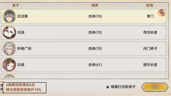 第二个输出平民选大师兄,便宜。或者李清圣紫命以上换掉大师兄。