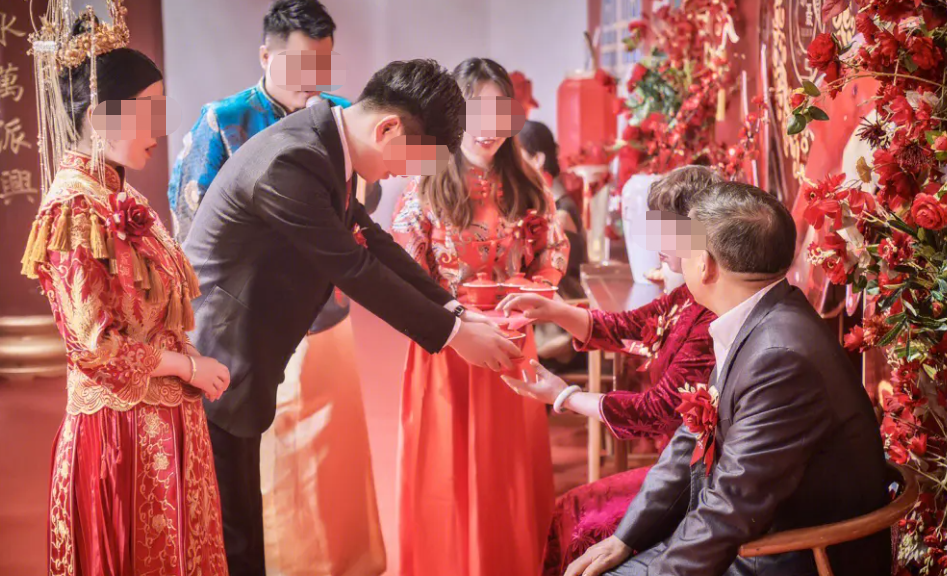 于是,双方父母火速进入看房子,给彩礼、定婚期阶段,在龙年春节前一天,两人的婚礼在现实中举行了。