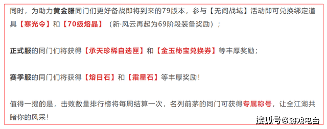 黄金服的玩家参与挑战后,还能再得【寒光令】和【70级熔晶】!要知道不久之后《逆水寒》就将迎来七周年,并且将黄金服等级上线开放至79级,为此各大神豪都在摩拳擦掌准备大干一场,这时快人一步的话,自然能够在七周年后获得更多的收益!