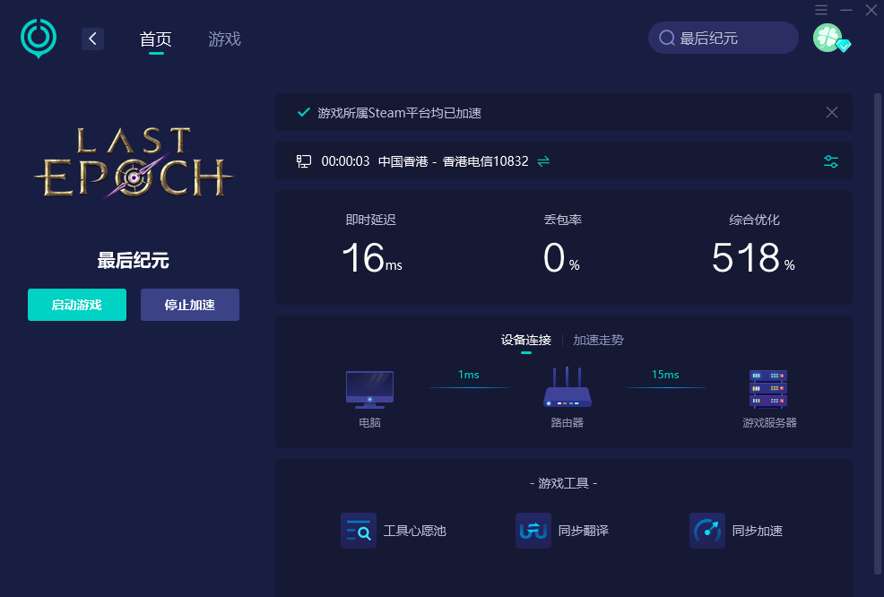 然后:点击即可优化网络,流畅游玩最后纪元