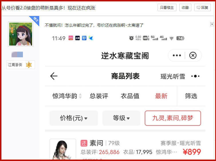 相信99%的老玩家都没想到,逆水寒这款运营时间长达五年的老游戏,竟然会在2023年末到2024年初这短短50多天的时间里,连续出现三次号价大涨的情况。