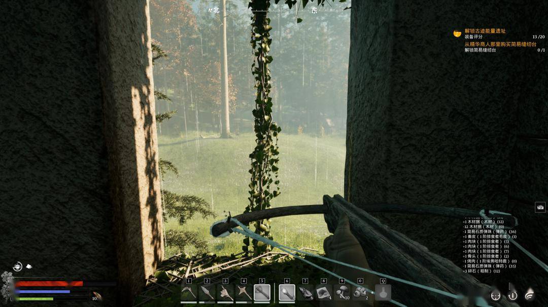 这些“神奇生物”有些也会有特殊的交互,比如游戏初期我躲在窝棚里搓材料的时候,就听到过一阵如同雷鸣般的怪物吼声。