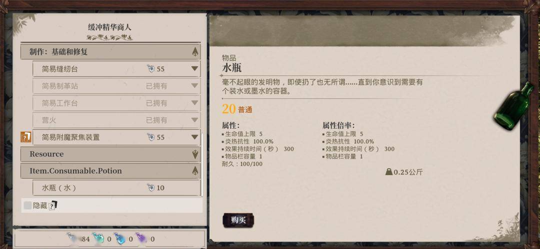 商人处除了出售蓝图和部分道具以外,还能直接用精魂(以及更高级的精华)购买大多数资源。换句话说,只要你付出定量劳动,就肯定能搞到自己想要的东西,不愿意研究生产流程,也可以直接卖原料买加工材料——当然,这可能会被界域商人赚到城乡剪刀差。