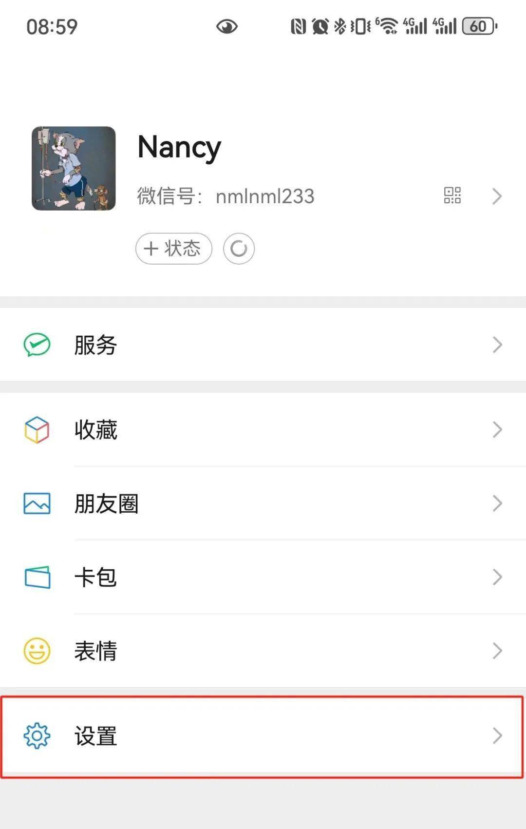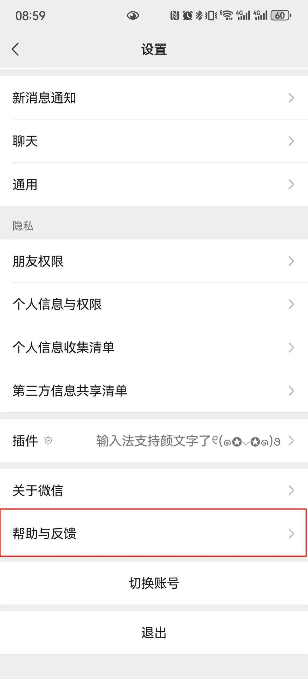 打开微信,点击右下角“我的”,点击“设置”,找到并点击“帮助与反馈”。