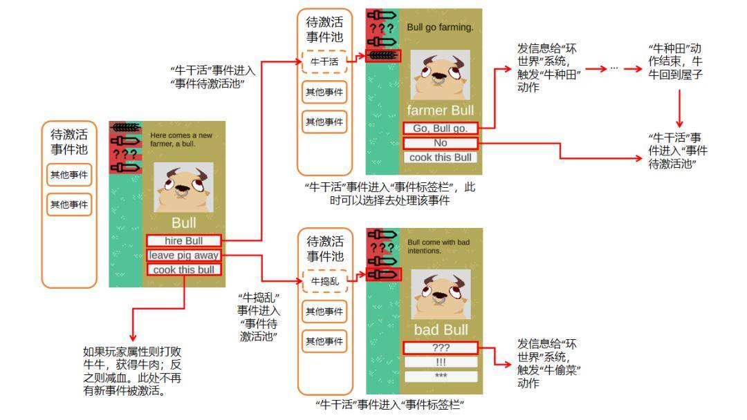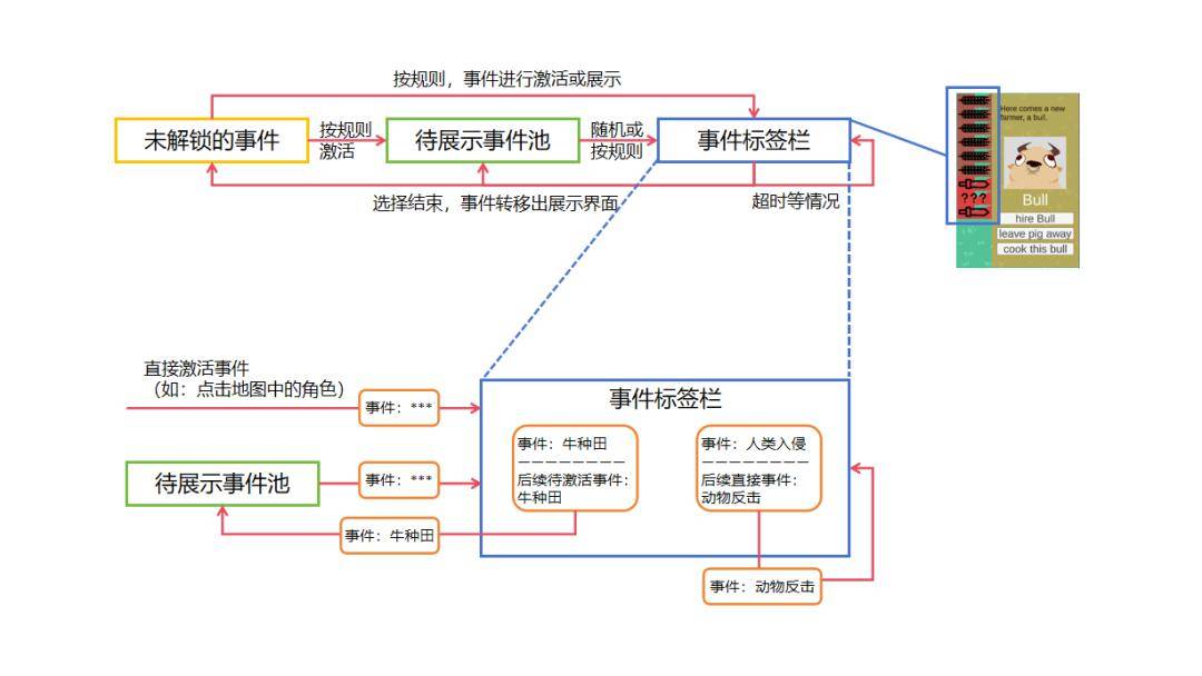 事件系统流程基本是按照预期来实现的,但由于临时起意,加入事件超时等设计,导致了一些不大不小的问题。这对于 48 小时的 GameJam 环境来说,还是比较耽误事的。