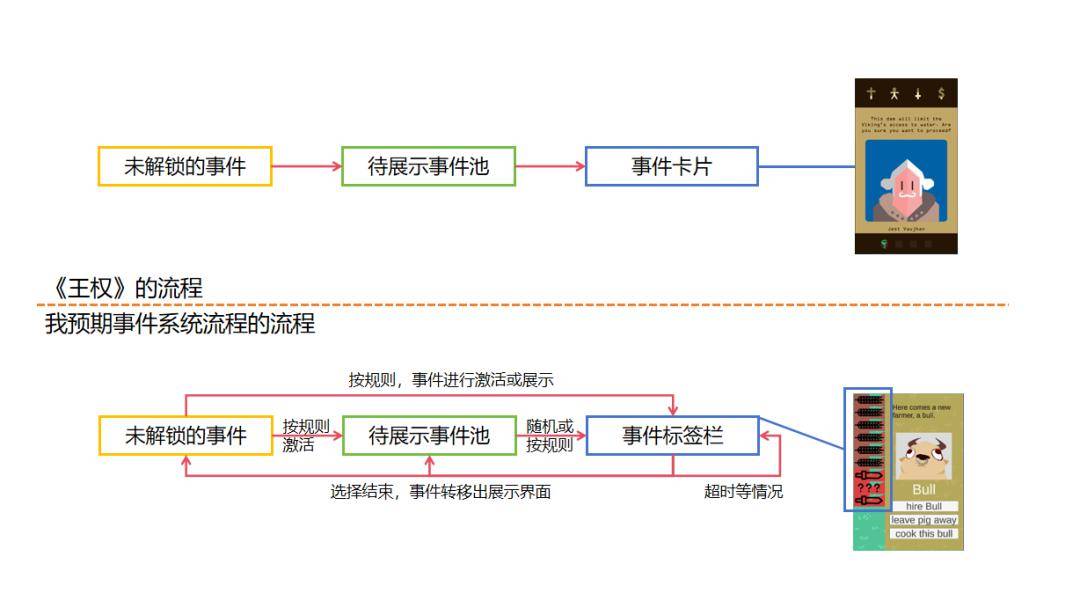 初步尝试之后,我发现这种弹窗内还要进行页面切换的流程比较复杂。单个事件压缩到一个 JSON 里面,内容会有些多。权衡过后,《王权》简洁的界面呈现让我觉得实现起来会比较容易,所以在此次 GGJ 中,就想尝试做一个类“王权”的玩法。