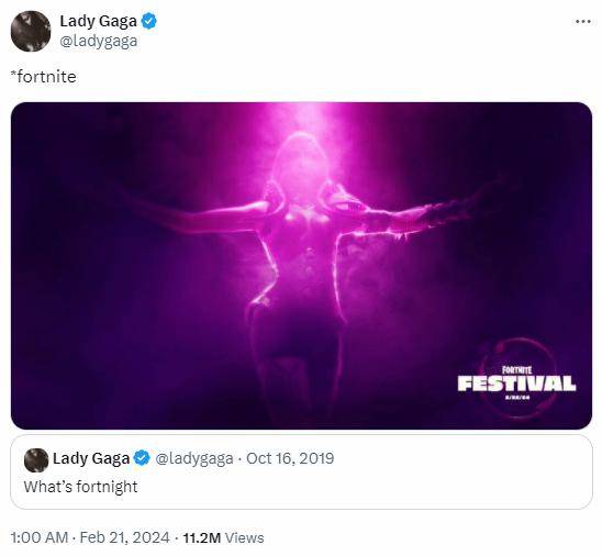 Lady Gaga透露,她将与《堡垒之夜》合作,成为继The Weeknd之后,《堡垒之夜音乐节》的第二位特邀艺术家。