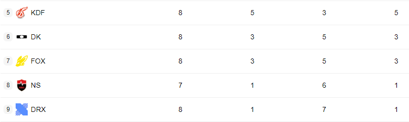 NS战队成绩2-6,还有机会跟DK、FOX争夺第6的位置(LCK前6晋级季后赛),而曾经的冠军队伍DRX,希望就非常渺茫了,目前1-7战绩位列联赛倒数第二,同样是冠军战队,DRX和EDG,属于是难兄难弟了,而唯一获胜的一局,还是赢的BRO,完全没有任何的含金量。
