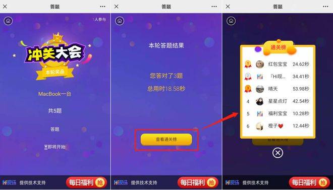 2) 可选择“开启奖品补发”功能,答题结束后,若无人通关,将按排行榜名次发放对应数量的奖品,有人通