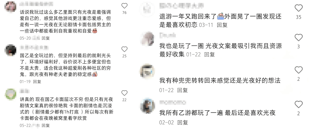 比如这段时间,我就在小红书上刷到了不少老玩家回坑《光夜》、新玩家后悔没早点入坑《光夜》的言论;
