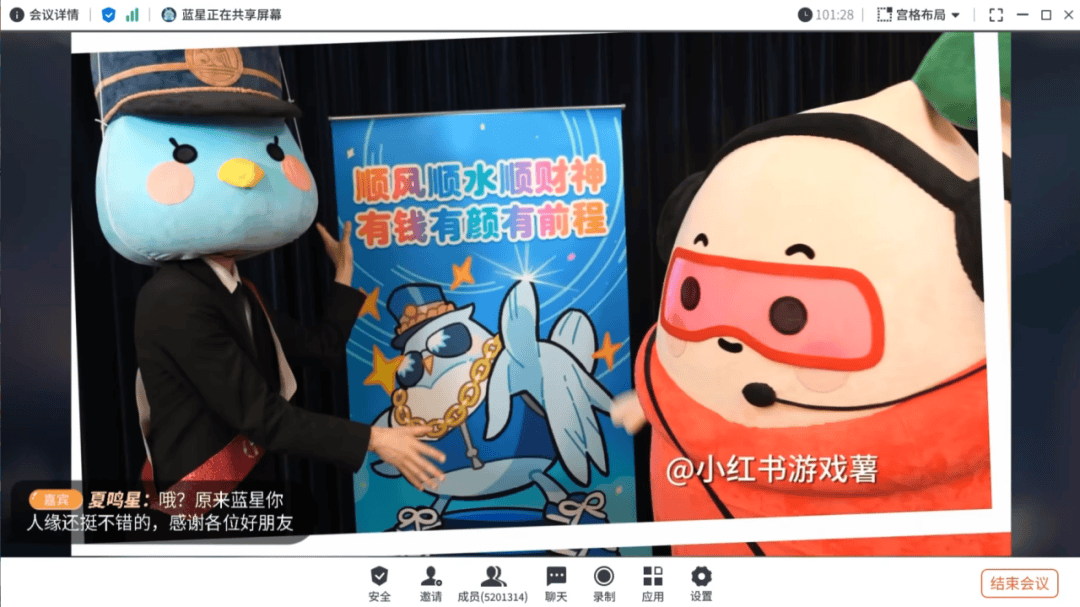 而在鹅厂之外,很多合作平台也时不时会找蓝星合作。比如去年底,蓝星还去B站、小红书、新浪等公司总部扫了楼,而扫楼这种事,往常一般是由明星来做的;