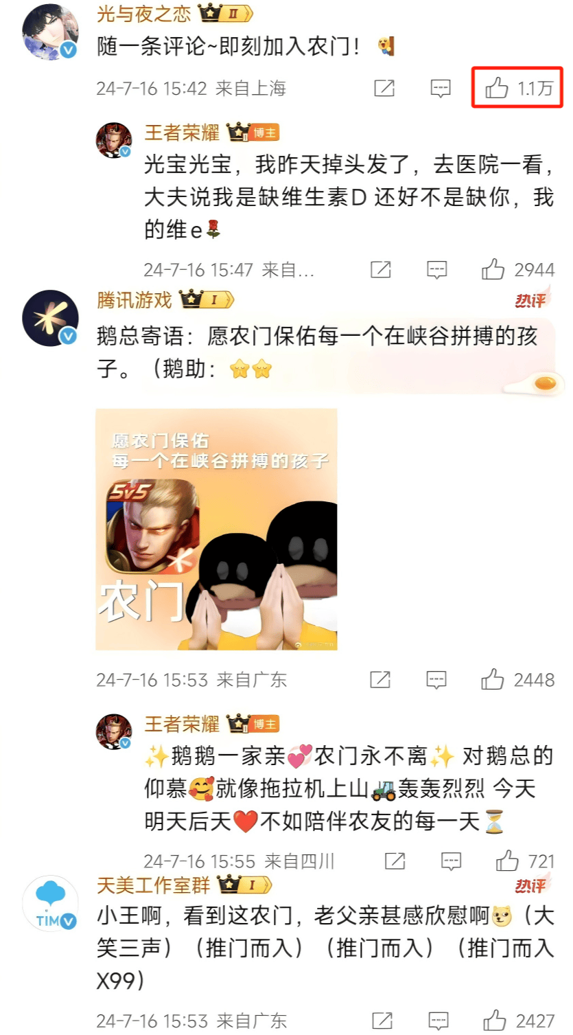 腾讯游戏、腾讯QQ、腾讯招聘,以及《王者荣耀》等鹅厂产品,也纷纷为《光夜》送上祝福。