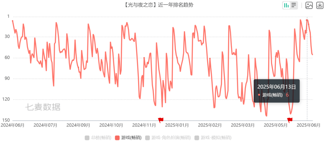 最近一年,《光夜》15次进入国区iOS游戏畅销榜Top 20,6次进入Top 10