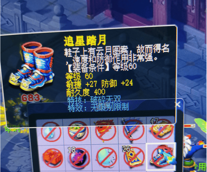 今日,有萌新分享了个人的出货经历。萌新升到60级后,为了充分利用三倍时间,花钱找来大佬带捉鬼。他无意中斩获了一双60级鞋子,没想到其附带了无级别+破碎的极品双蓝字。该特技的效果是减去造成物理伤害的相同魔法值,比较克制脆皮单位。