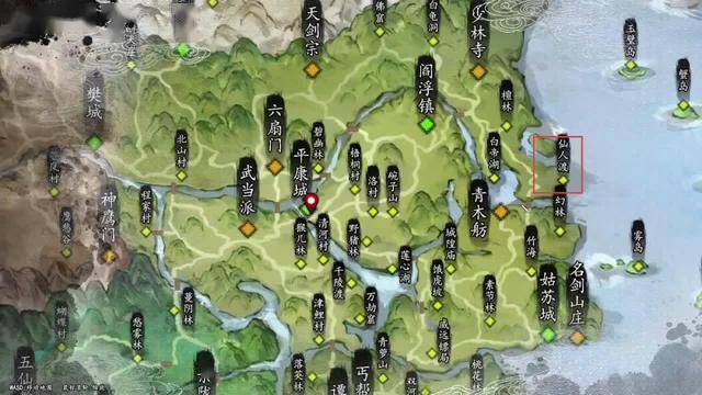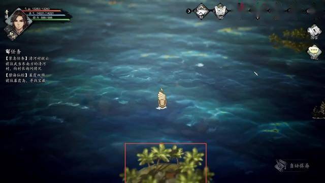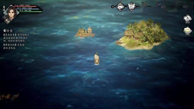 在海上一直往右走就可以到达游仙岛。