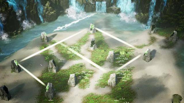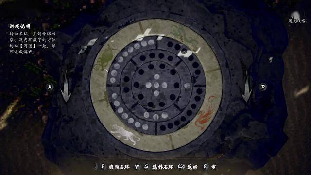 岛上共有两个解谜,先处理右边的洛书,首先需要一开始转动最边缘的数字,将二、四、六、八固定在四个角,然后中间的数字如图所示排列,也可以直接点击右上角跳过解密。