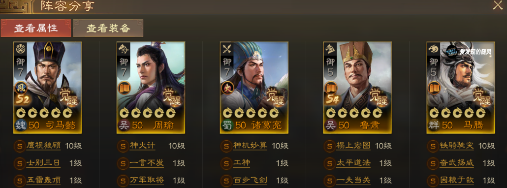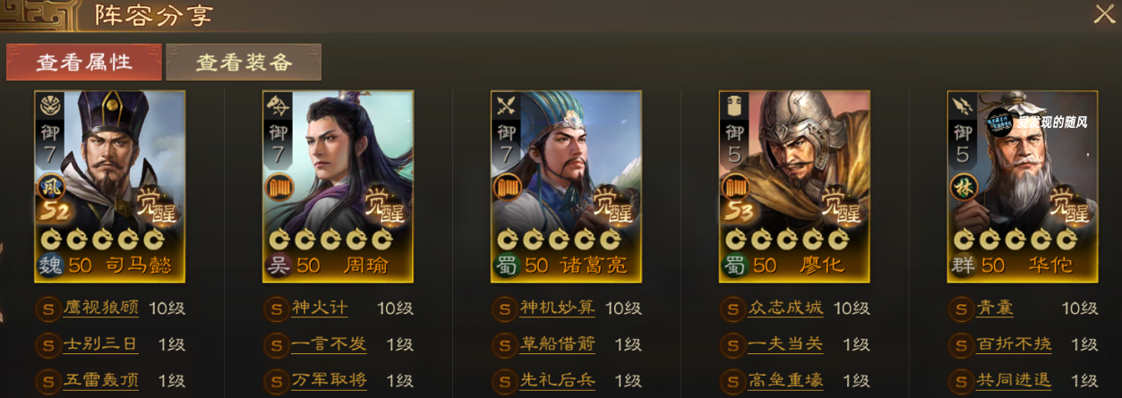 也可以换于禁带高垒一夫,防御性比较强。荀彧可以带匡弼先礼后兵,或者草船乐善。