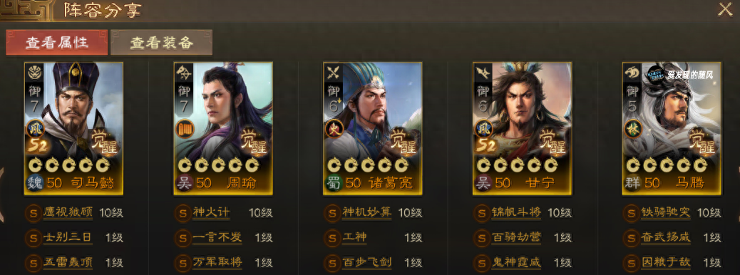 针对三马和吴刀的队伍,开局只要把三马的司马昭和吴刀的徐盛给带走,基本就赢了。这个队伍续航基本就靠因粮于敌,全冲脸阵容,装备要比较好才行。