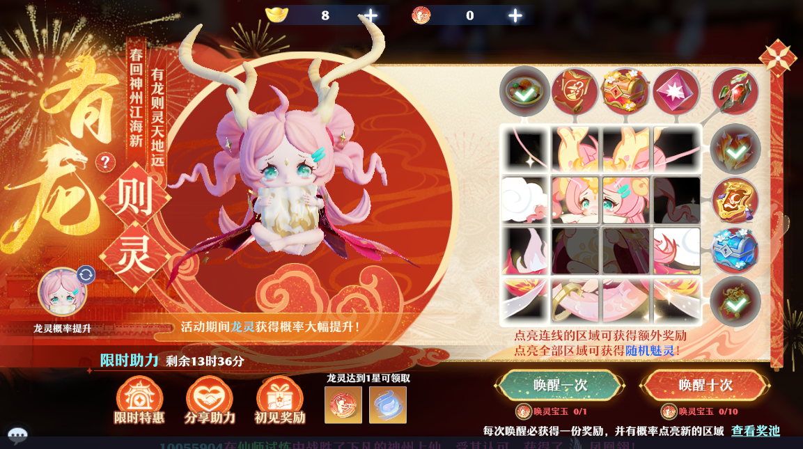 全新魅灵·龙灵获取方式比较简单,可以通过最近「有龙则灵」活动获取,魅灵抽奖点亮全部区域可获得随机魅灵,活动期间完成魅灵觉醒后,获得龙灵的概率大幅提升,所以大家可以趁这个活动,抽到龙灵魅灵。