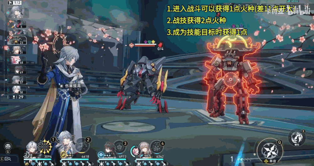战斗中,白厄的机制主要围绕着“火种”以及变身后的新形态展开。