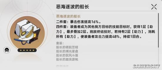 遗器方面,因为白厄变身后只持续一回合的特殊机制,以及其会让队友暂时离场的特性,所以能提供单回合战力增强的外圈遗器“恶海逐波的船长”,以及能在少人或多人时提供增伤的新版本内圈遗器“妖精织梦的乐园”就十分适合白厄。