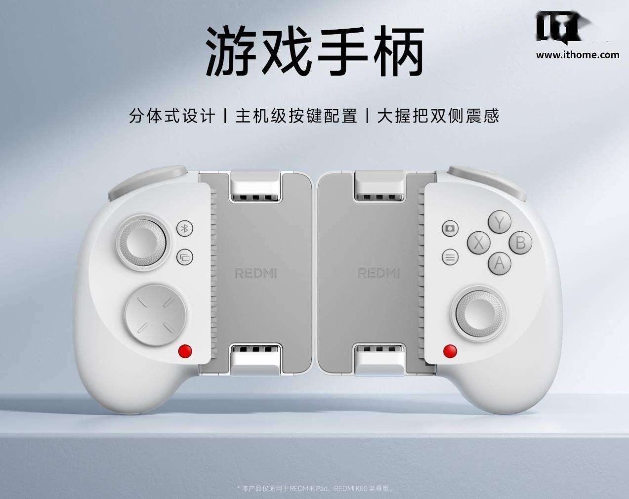 小米旗下REDMI品牌近日揭晓了其最新的游戏手柄,专为游戏爱好者设计,并于今晚正式推向市场。这款手柄采用了创新的分体式设计,并装备了两段式夹爪,使其能够紧密贴合REDMI K Pad平板以及K80至尊版手机,为玩家带来专属的游戏体验。其市场定价为499元。