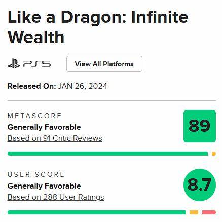 今年排名第三和第四的游戏分别是《铁拳8》和《如龙8》,二者分别获得90分和89分。
