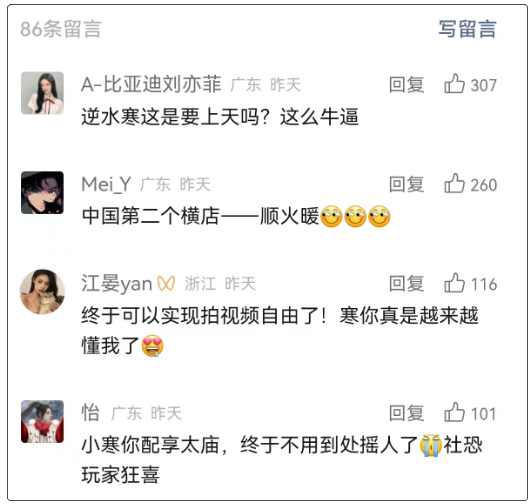 《逆水寒》手游的国风版Sora,发布之后也备受玩家追捧,很多人怒赞:“你配享太庙”,“这是中国第二个横店”,“要上天的节奏。”