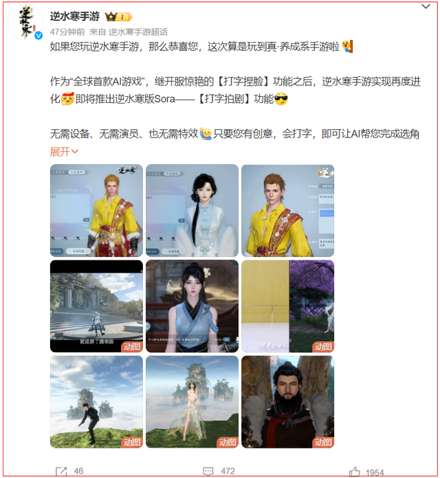 Sora的公布也激励了无数有志于AI技术的厂商,就在这两天,互联网巨头网易正式官宣,国内首款“游戏Sora”也要来了!