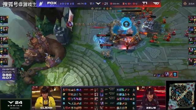 使用了上单剑魔,打野梦魇,中单发条,AD韦鲁斯,辅助妮蔻,这套阵容有开团,但是没有任何一个坦克英雄,上单的剑魔更是出了穿甲流的装备,梦魇为了承担开团出了一些肉装。现在应该也就只有T1战队才敢这样拿出五核的阵容。最后,这套阵容也是27分钟,非常轻松的推平了fox战队的基地,拿到七胜的T1战队又重新回到了lck排行榜的第一,赛后采访环节中,keria也是回应了自己目前的阵容选择。