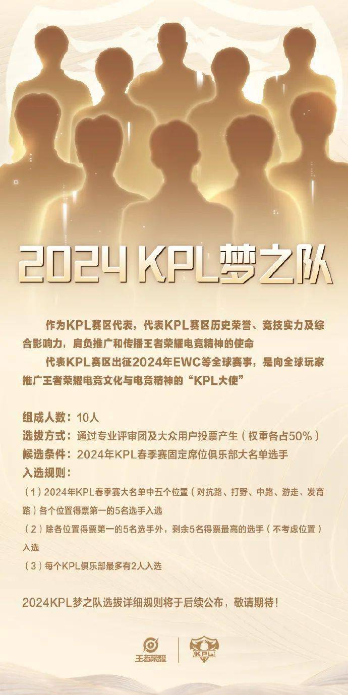 每个俱乐部最多两名选手,2024KPL梦之队将投票产生