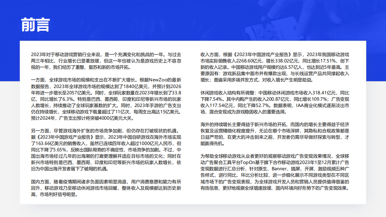 今天分享的是:2023年全球手游广告变现报告(报告出品方:top on)