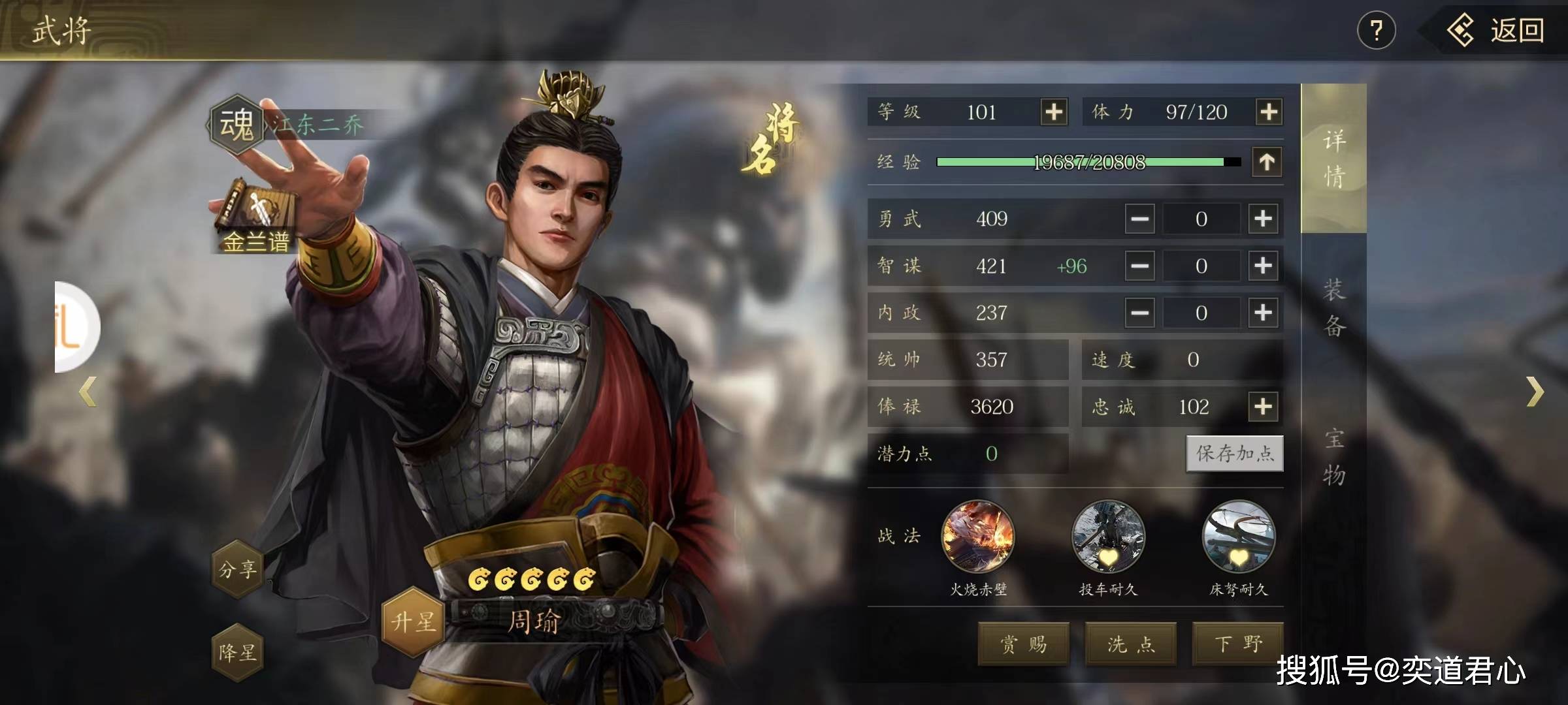 如果你想在军令如山王者之心的世界里打造一个武力跟智谋一样顶尖的周瑜,不妨尝试让他吸收其他在武力方面有一定特长的角色,从而获得更多的天赋和点数。智力和武力比肩的吕布同样如此,拿一群文化人去喂,再辅以临时翻倍能力的符咒,即可让他们在特定的时间内成为无懈可击的全职高手。