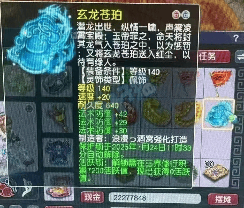 近期,一名少侠在鉴定140级灵饰时人品爆发,斩获“一样加成”成就,这是一枚主属性为国标速度20点,下排法防共101爆了17点的佩饰。在武神坛比赛法谛听横行的版本中,此类高法防灵饰势必会得到诸位服战老板的青睐,预估其价值能够到达六位数。