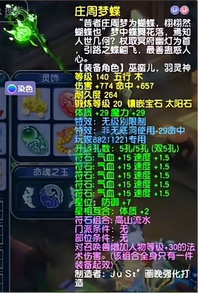 至于20级太阳石的镶嵌目标,正是这把140级无级别专用法杖。这武器给物理系使用综合伤害1002,给法系用增加222点法伤,堪称第一双修无级别!同时也是F哥的第四件20锻装备。
