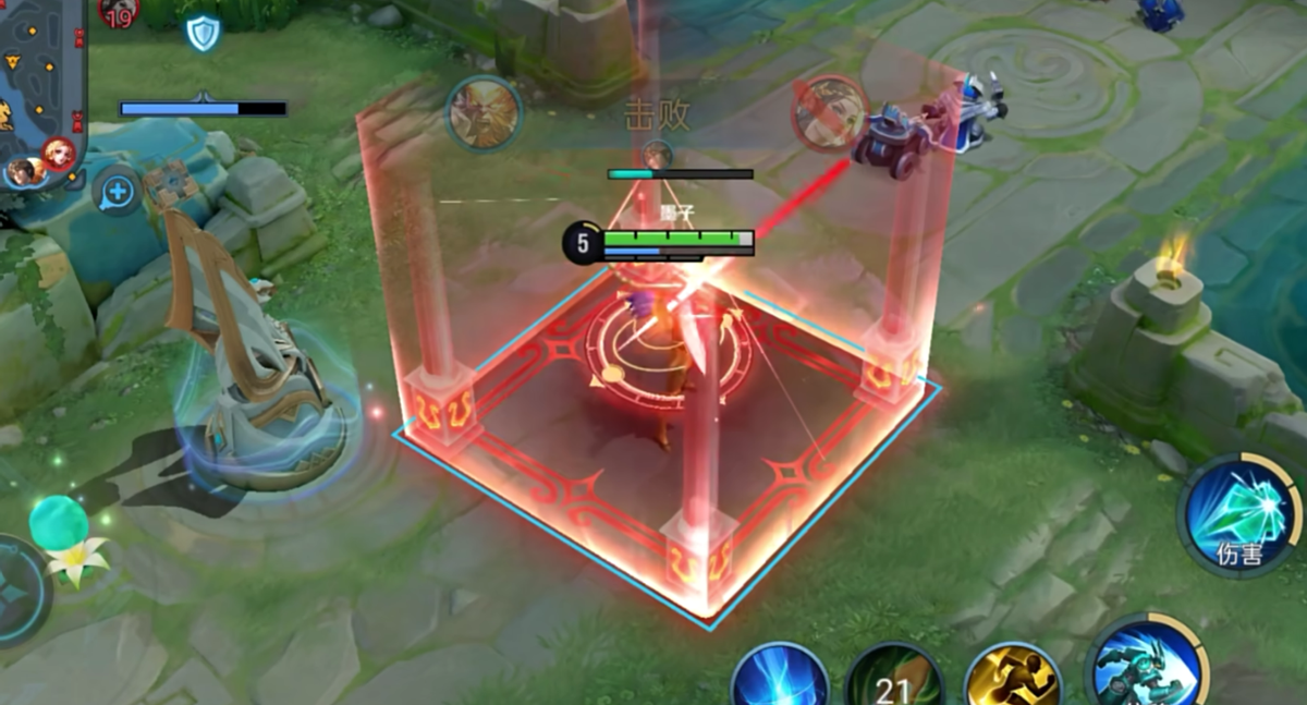 墨子的大炮会在终点留下红色圆盘,释放技能的时候有Z字雷电向前移送,给人一种速度超快的视觉效果,大炮技能设定看不出任何锚点。大招的造型更加帅气,四个红色的柱子形成结界,内部有雷电闪烁,移动时还有特殊的音效,这手感太好了。别的不说,仅大招的创意就足够值回传说皮肤的售价。从观感上来看,个人感觉墨子的皮肤比铠的更加耐看一些。