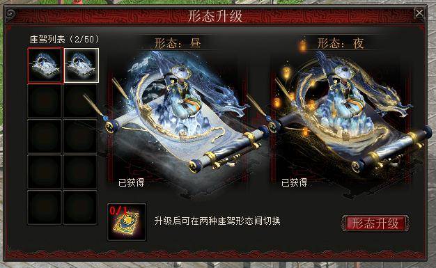 全服限量100张。已在座驾列表中的“龙吟山河”座驾使用图册可开启双形态功能,座驾可以变换昼、夜形态,且可获得2种形态的风尚值。