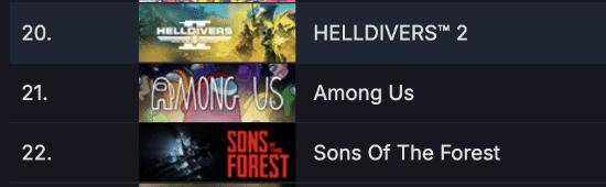 目前,《地狱潜者2》在Steam已创下玩家峰值457649人的新纪录,超越了《森林之子》《Among Us》等作,进入Steam在线Top 20。
