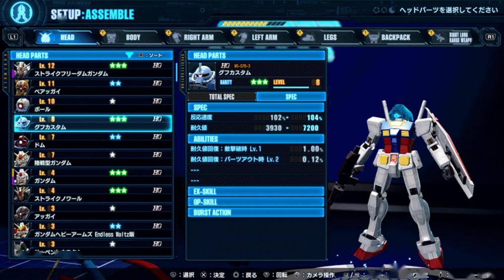这次,拥有超250架机体的零件让大家来混合,全身有11个部件可以替换(头、身、左手、右手、腿、背包、左手远程武器、右手 远程武器、左手近战武器、右手近战武器、盾牌)。