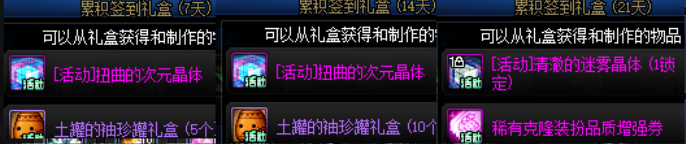 在原有的签到活动基础上,策划新增了“透明龙袍升级券”和“15个魔盒”作为奖励。现在玩家签到21天,总共可以获得20个次元晶体、3个锁1晶体、15个魔盒以及1张透明龙袍升级券。