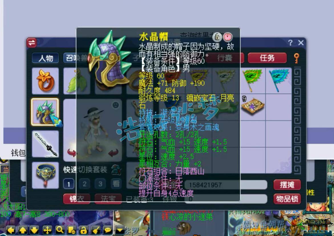 60级带凝滞术的无级别画魂套男头,打了13段月亮石,这种装备还是很稀有的,打13锻也无可厚非!
