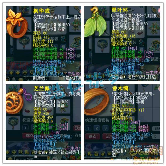 戒指下排三封印,耳饰下排双封印一速度,佩饰和手镯下排都是双法防一防御,全部打了6锻星辉石,特效8级心无旁骛!