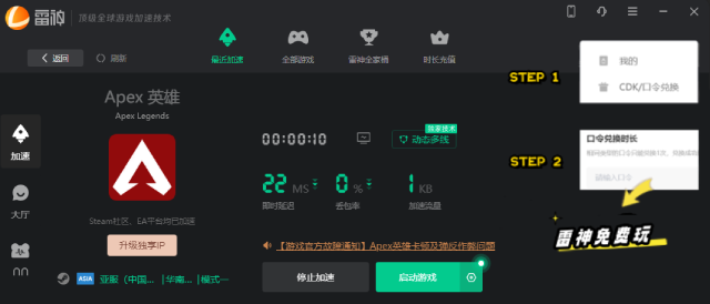 APEX报错、白屏可能和玩家本地网络环境有关,可以通过雷 神优化网络来解决该问题,打开其客户端搜索“Apex”找到游戏启动优化即可。