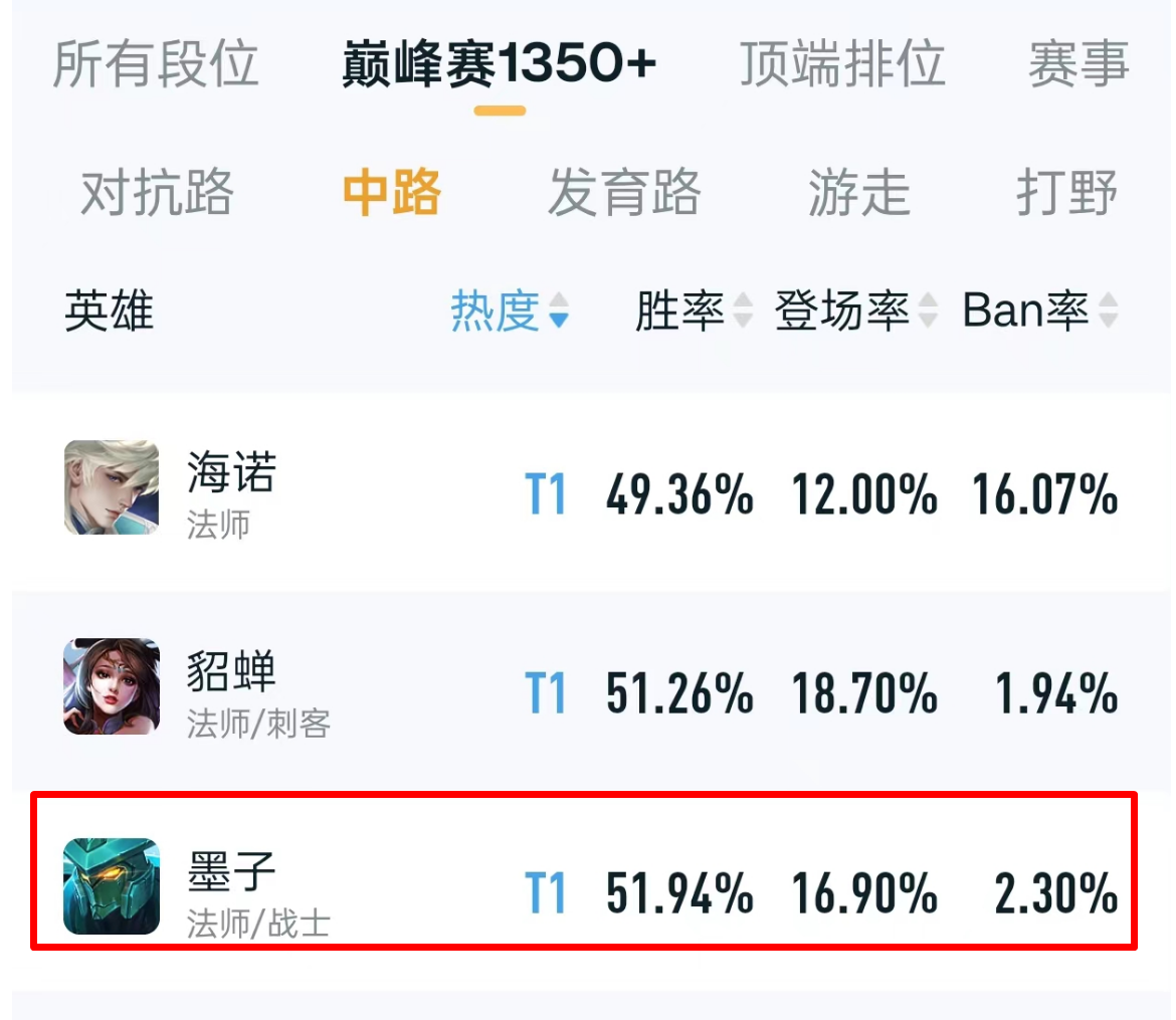开团不是墨子的强项,但他的保护能力很强,三个技能都有小控制,可以防止刺客近身己方射手。此外,大家要注意下,墨子的大招可以被打断,一定要搭配闪现释放,只要注意以上几点,你的墨子也会很强。目前墨子双榜数据已经起飞,排位赛14.3%的出场率,52.08%的胜率;巅峰赛16.9%的出场率,51.94%的胜率。数据很棒,如果你感觉打不过墨子,你也可以加入。