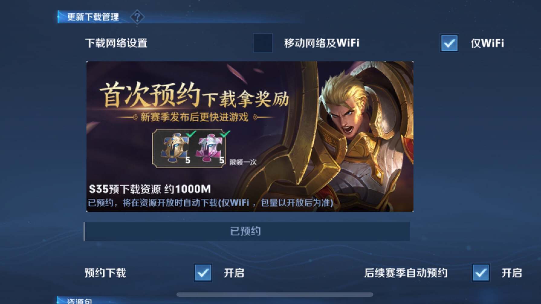 王者荣耀S34赛季更新已经有一两个月了,在春节假期结束之后,玩家也发现官方已经上线了s35赛季的资源包下载预约,玩家现在可以预约下载下一个赛季的资源包了,等到资源开放时,就可以自动下载新赛季的资源包了。玩家预约下载新赛季的资源之后,还可以领取一些奖励,为五个皮肤碎片和五个英雄碎片。