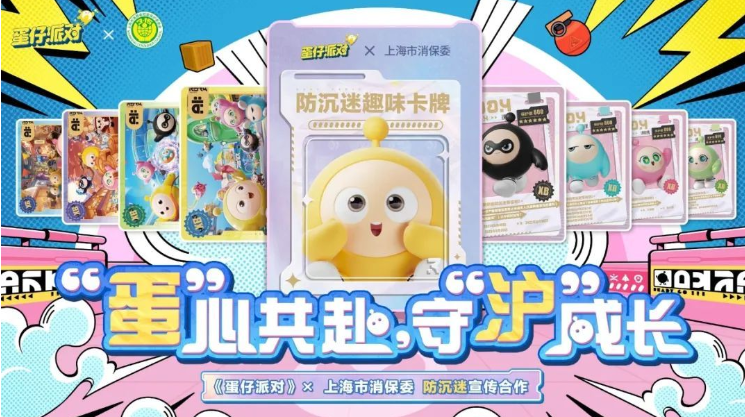 近段时间《蛋仔派对》还与上海市消保委携手,用“趣味卡片+防沉迷知识”的方式,向未成年人宣传防沉迷的相关内容,全面保护未成年人网络权益与身心健康。