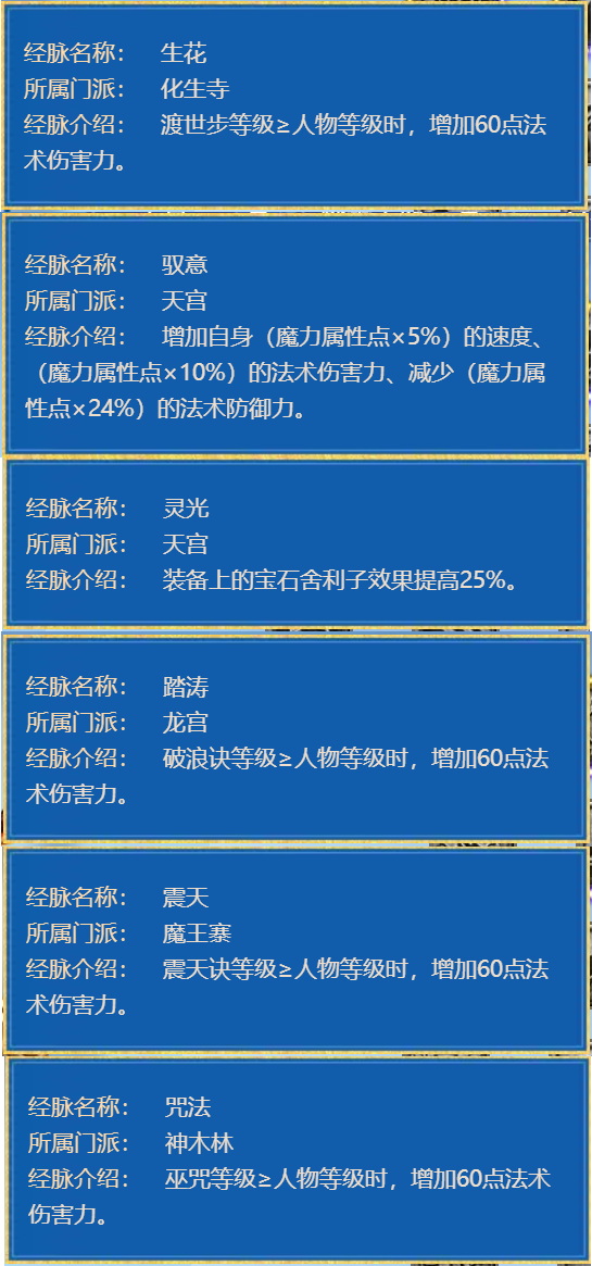 下面是各法系门派必点的加成经脉