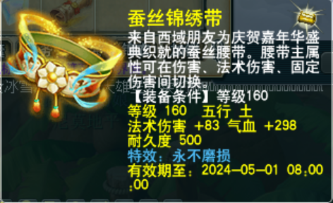 梦幻每年可以领取两次活动腰带