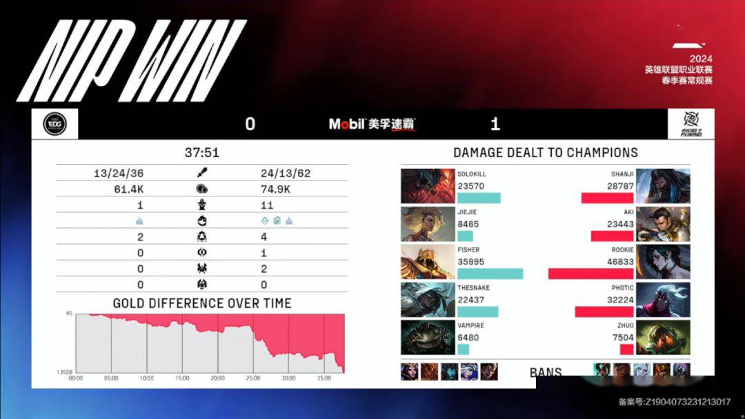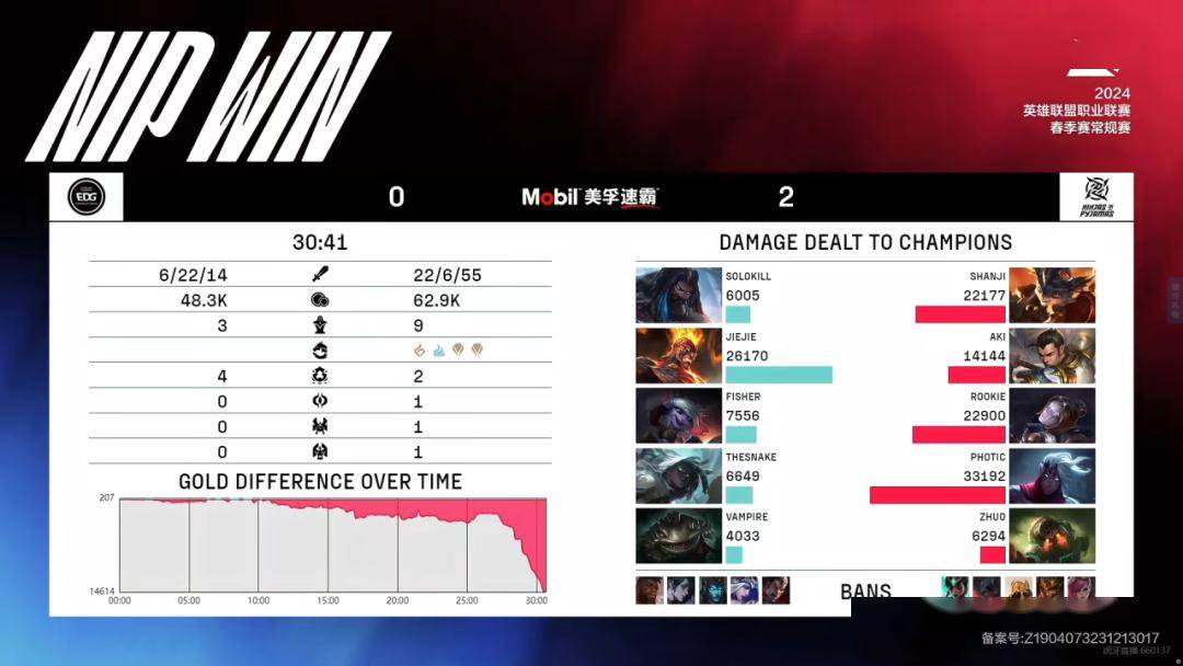 原标题:赛后战报丨2024LPL春季赛常规赛赛报【上海EDG合创汽车 VS 深圳NIP】