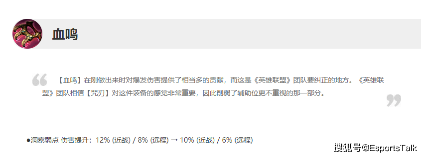 通过过往的比赛记录我们不难发现,keria使用这些辅助大部分都集中在14.1-14.2版本,但在14.2版本的补丁中,血鸣这件装备就已经受到设计师的关注,惨遭削弱了。